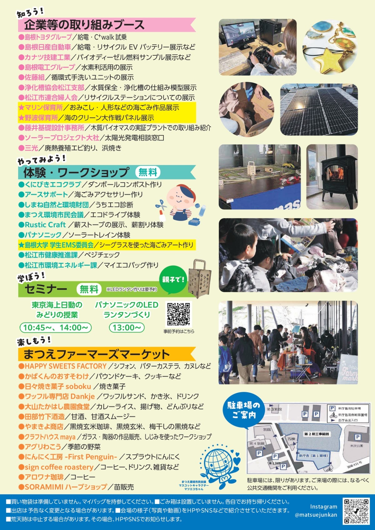 恒例の「まつえファーマーズマーケット」をはじめ、各種セミナー、企業の取り組み紹介や楽しいワークショップなど盛りだくさんのメニューで開催します。