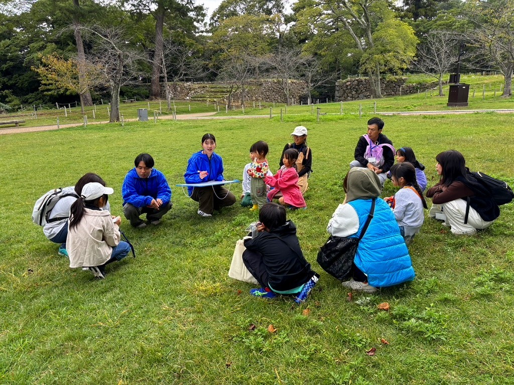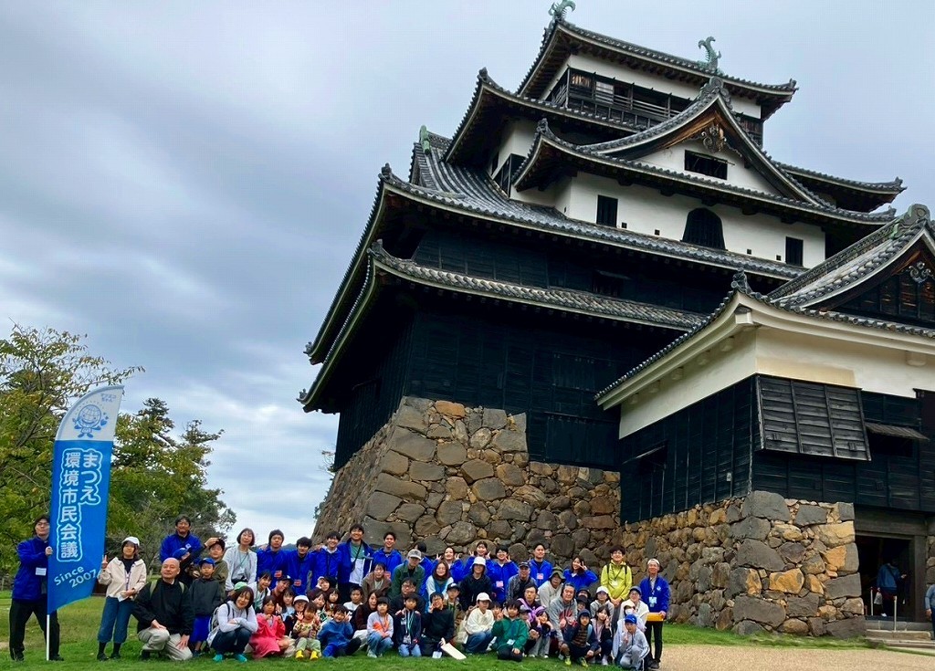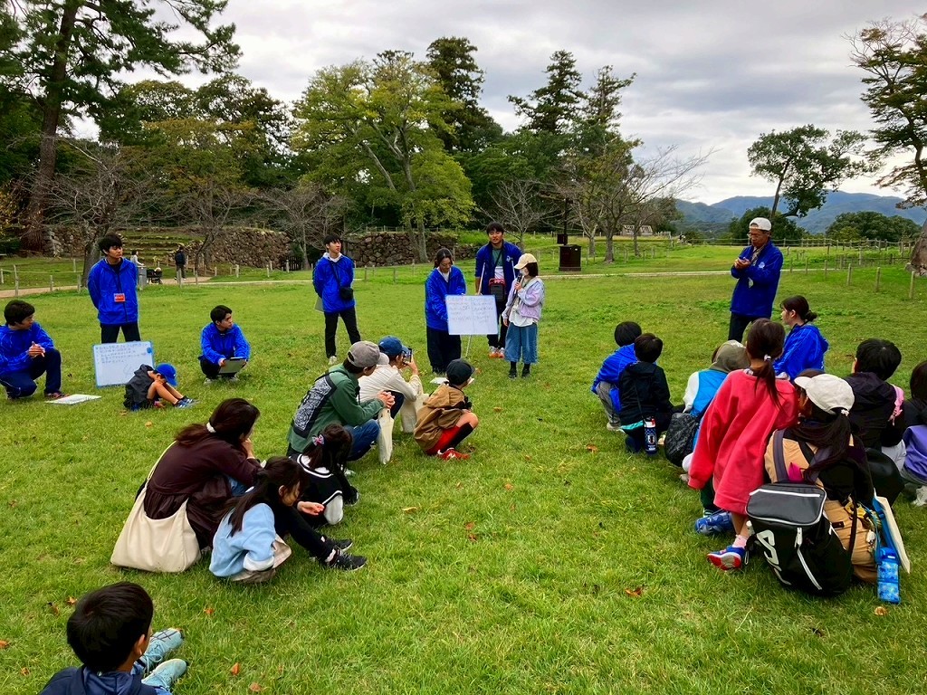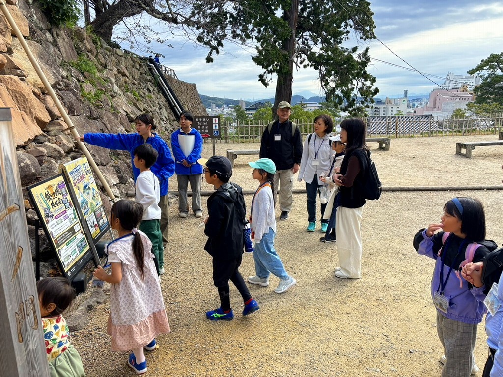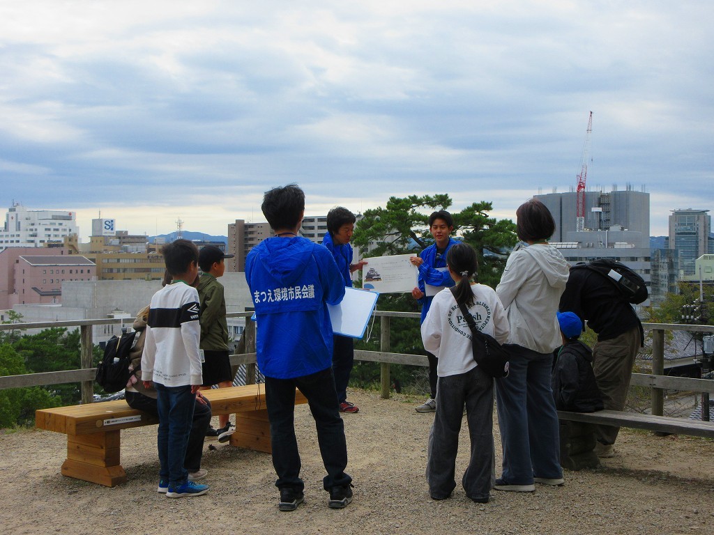 すっかり秋らしくなったこの日、松江市内の小学生とその家族が、島根大学の松本一郎先生、学生の皆さんからの松江城の歴史や自然環境についてのクイズを解きながら、松江城を歩いて周りました。
