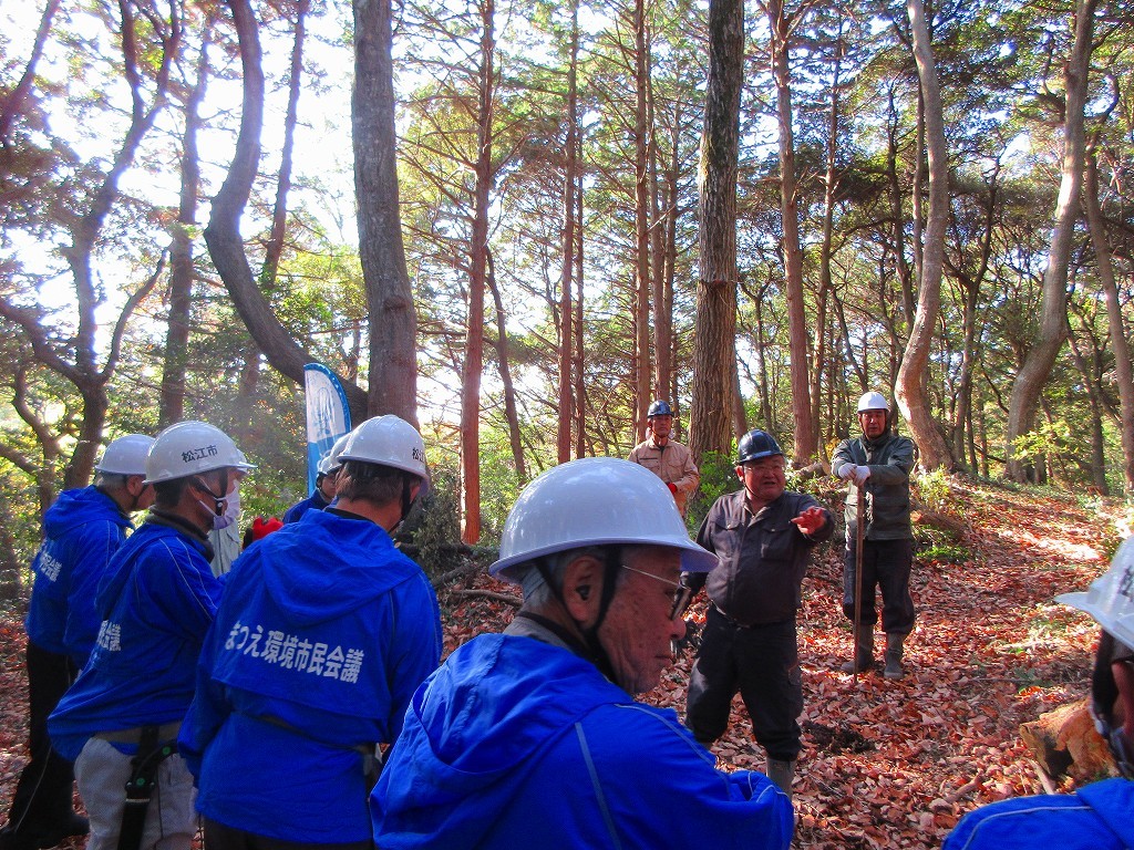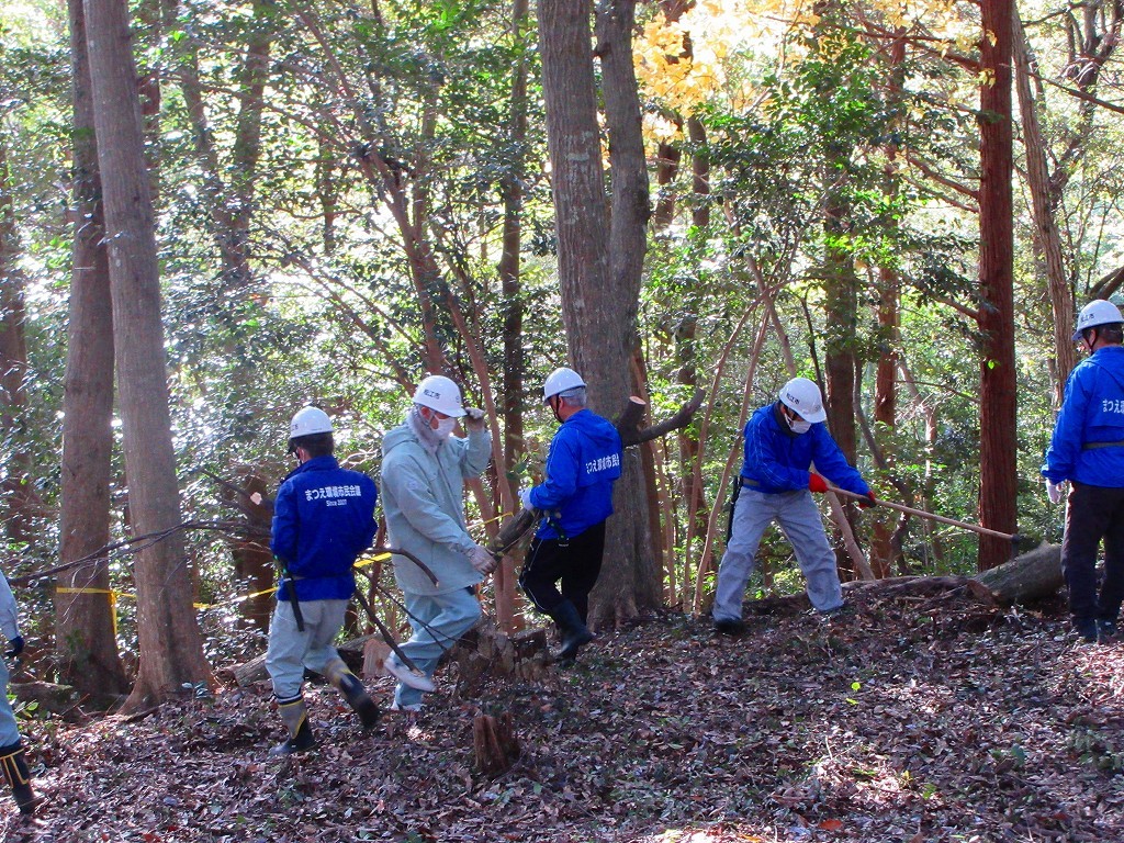令和7年12月13日(土)楽山公園で、先月に続いて里山保全活動を行いました。
